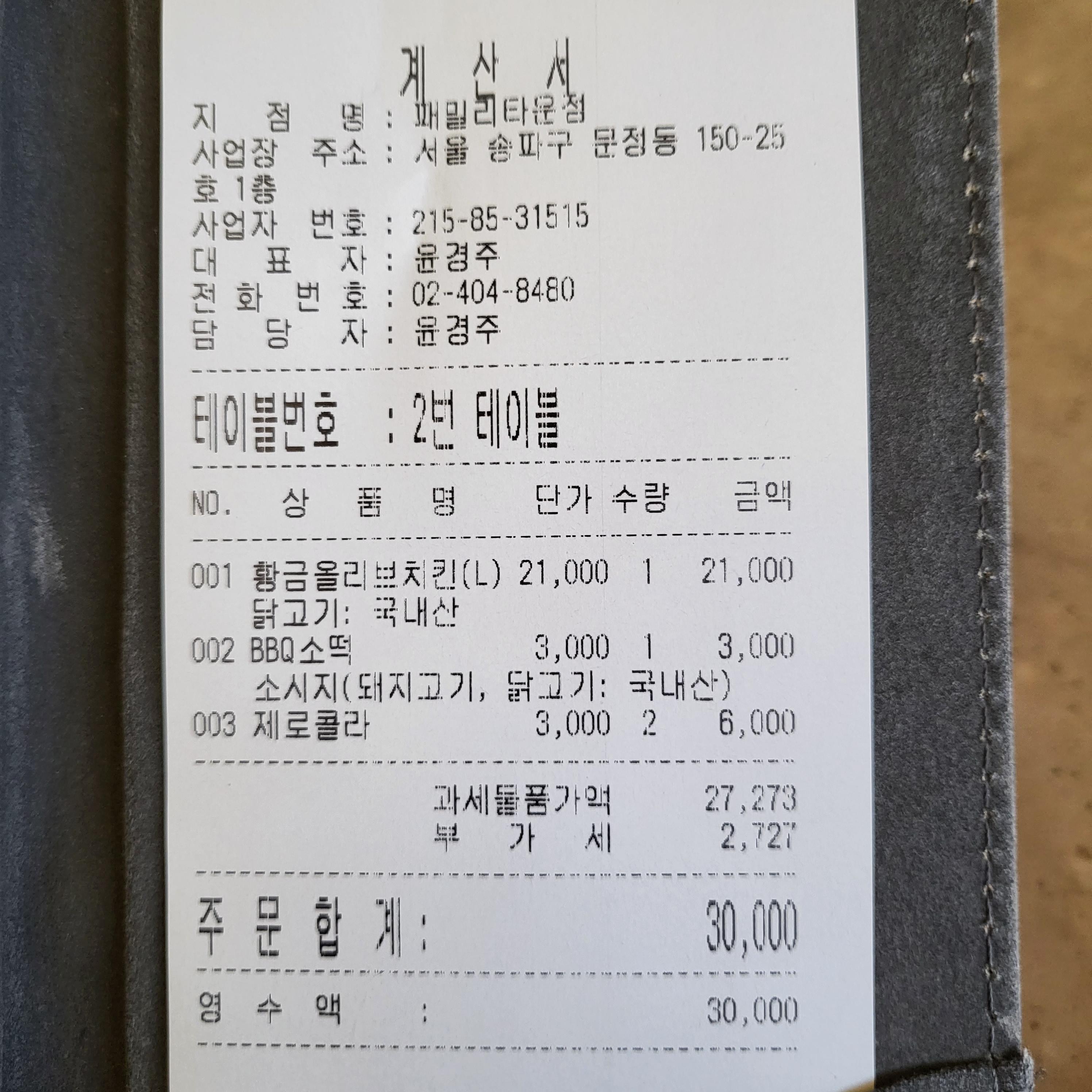 개인적으로 황금올리브가 후라이드 치킨 중에 제일 맛있는 치킨인데 패밀리타운점의 황금올리브는