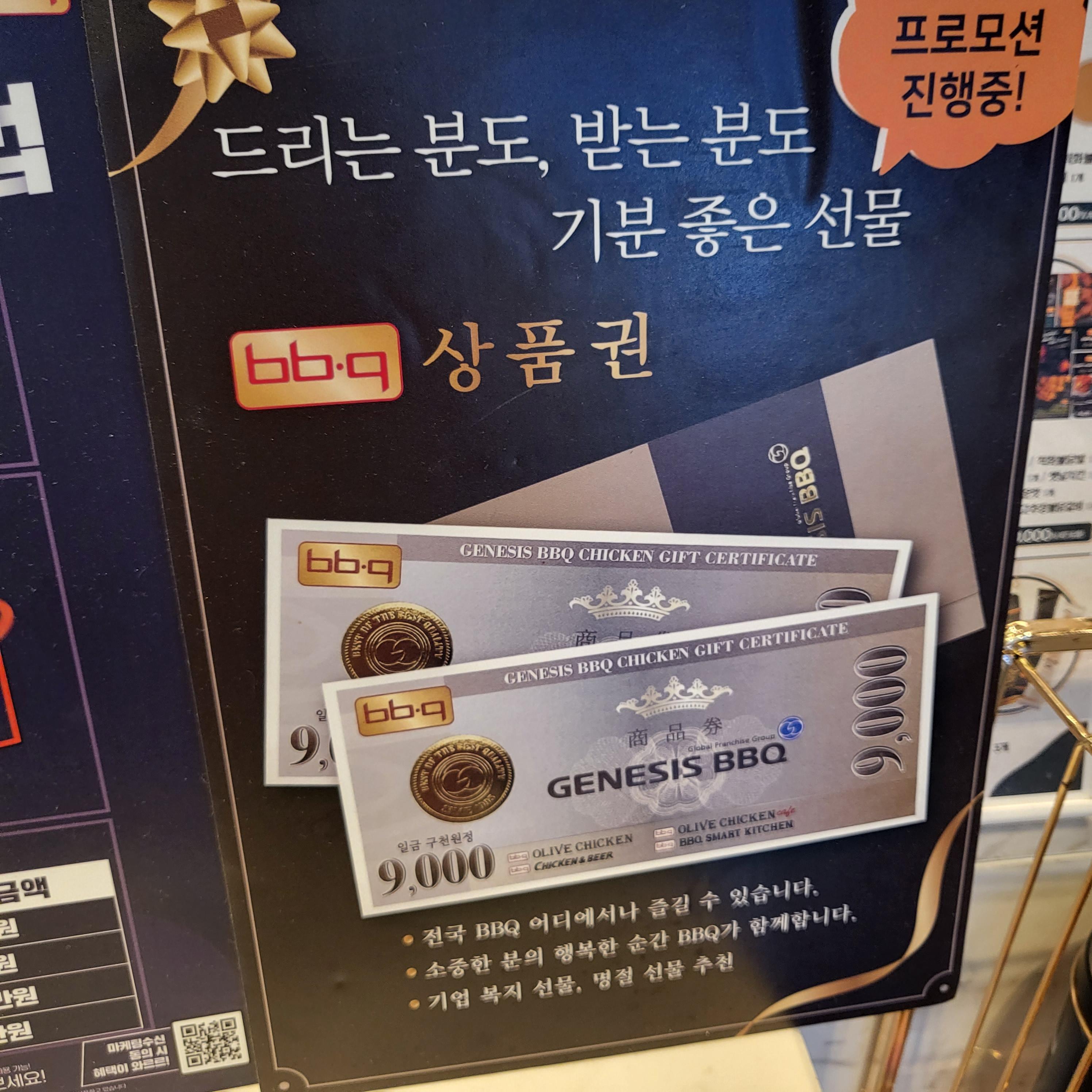 계산을 하고 나오는 길 BBQ상품권이 보였습니다.